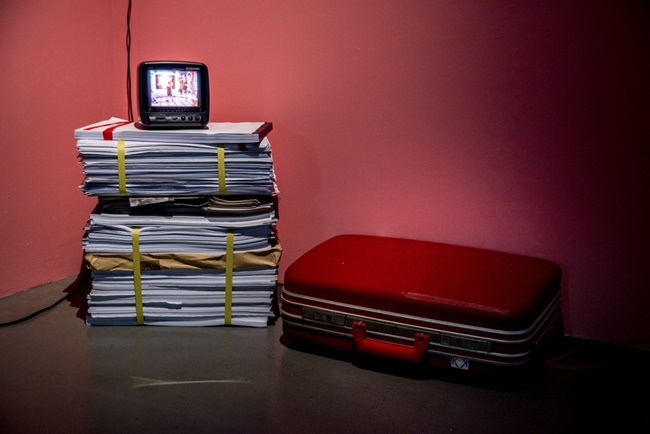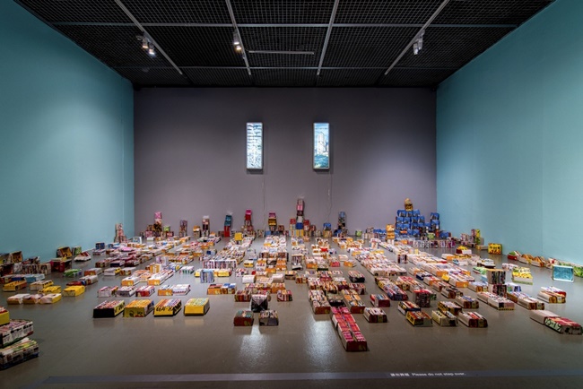 張惠蘭主任表示,繼時性對比一般是色彩學中指涉視覺先行感覺對後續感覺影響的情況;這裡「繼時對比」個展延伸了這個概念,主要由創作過程尋找與生長地的連接點出發,我在閱讀與組合父親2004年搬離眷村至拆除後每日製作的家用紙盒開始,那些因搬遷而與家的斷裂失落的事件,在紙盒影像中片段文字與色彩組合下逐漸透漏一些諸絲馬跡與時代碎片(fragment),除了成為自我審視以及內在思考的介面外,作品也透過空間裝置反映了傳達出父女對於時間與環境上的轉變,以及自身所面臨的處境試圖安身立命的過程。