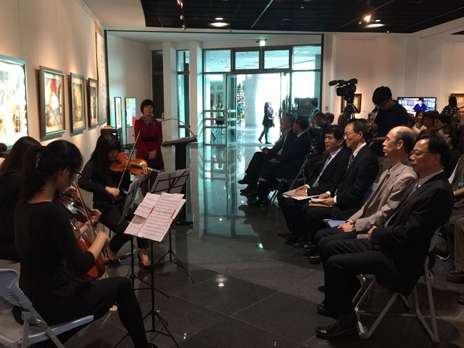 臺中市屯區藝文中心從今年12月12日到明年1月31日止,展出本校美術系主任詹前裕教授近30年來的膠彩畫作品,開幕典禮在12日下午二時舉行,先由本校音樂系學生組成的Good day弦樂三重奏團演奏,接著上台致詞的貴賓有:總統府資政廖了以、前臺中縣長廖永來、立法委員蔡其昌校友、國立台灣美術館副館長陳榮昭,以及本校副校長蔡瑞明等,到場參觀祝賀的畫家、校友等來賓共有兩百餘位,盛況空前。
