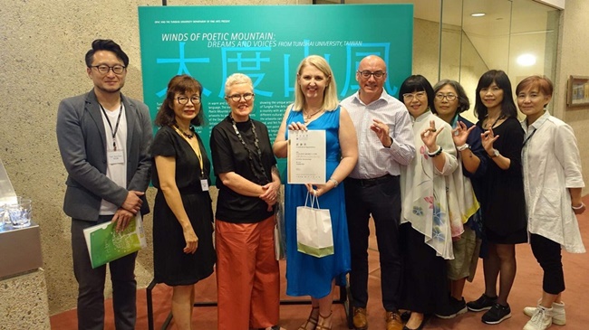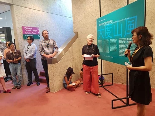 展覽團隊與館方人員以及贊助者合影留念 (左圖),美術系師生於昆士蘭表演藝術中心外合影 (右圖) 大度山風】,意思為「詩意山之風」,詩意之山,即為孕育出東海大學美術系的大度山。在那裡美術系師生們繪畫、做雕塑、拍攝影像,然而更確切的說,是在寫一首又一首的詩。詩的內容源自於對生活的細膩體驗,用的是誠懇溫暖的藝術語言。展覽集結了東海大學美術系所21位師生的作品。包含了油畫、水墨、膠彩、雕塑、以及新媒體藝術,希望能將東海大學美術系多元的藝術形式呈現出來。ountain【大度山風】,意思為「詩意山之風」,詩意之山,即為孕育出東海大學美術系的大度山。在那裡美術系師生們繪畫、做雕塑、拍攝影像,然而更確切的說,是在寫一首又一首的詩。詩的內容源自於對生活的細膩體驗,用的是誠懇溫暖的藝術語言。展覽集結了東海大學美術系所21位師生的作品。包含了油畫、水墨、膠彩、雕塑、以及新媒體藝術,希望能將東海大學美術系多元的藝術形式呈現出來。藝術中心QPAC(Queensland Performing Arts Centre)展出,於2019年1月18日在QPAC Tony Gould畫廊舉辦開幕交流茶會,由美術系張惠蘭主任以及策展人段存真老師率領多位參展師生出席。現場嘉賓如雲,布里斯本當地藝術文化圈人士以及藝文愛好者到場致意欣賞展覽,駐布里斯本台北經濟文化辦事處洪振榮處長也到場致詞。除此之外昆士蘭台灣中心陳淑芳主任、佛光山中天學校徐秀美副校長、以及僑務委員會的委員皆蒞臨現場參觀與指教。