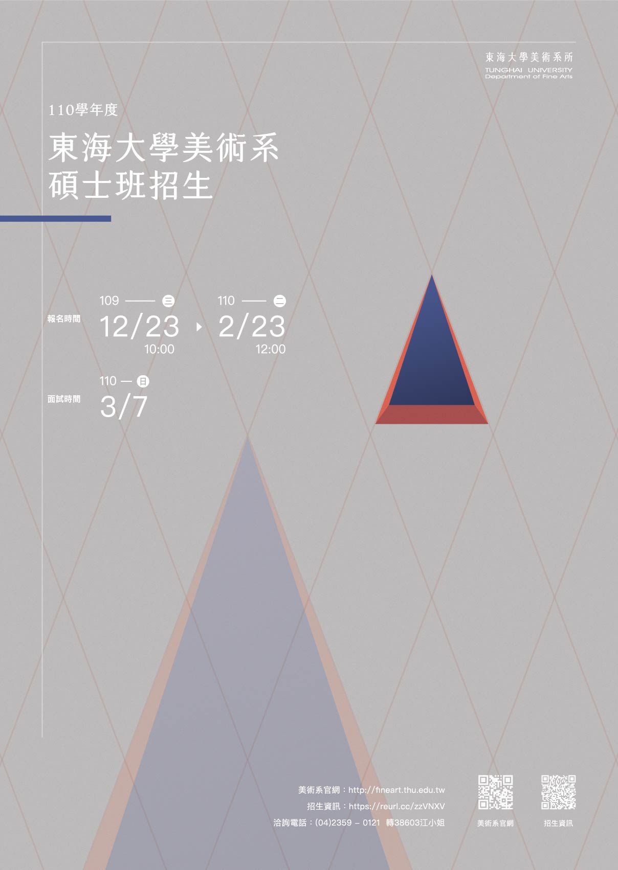 東海大學美術系TUNGHAI UNIVERSITY DEPARTMENT OF FINE ARTS-新訊與活動-最新消息- 110學年東海大學美術系「碩士班考試入學」報名開始囉!