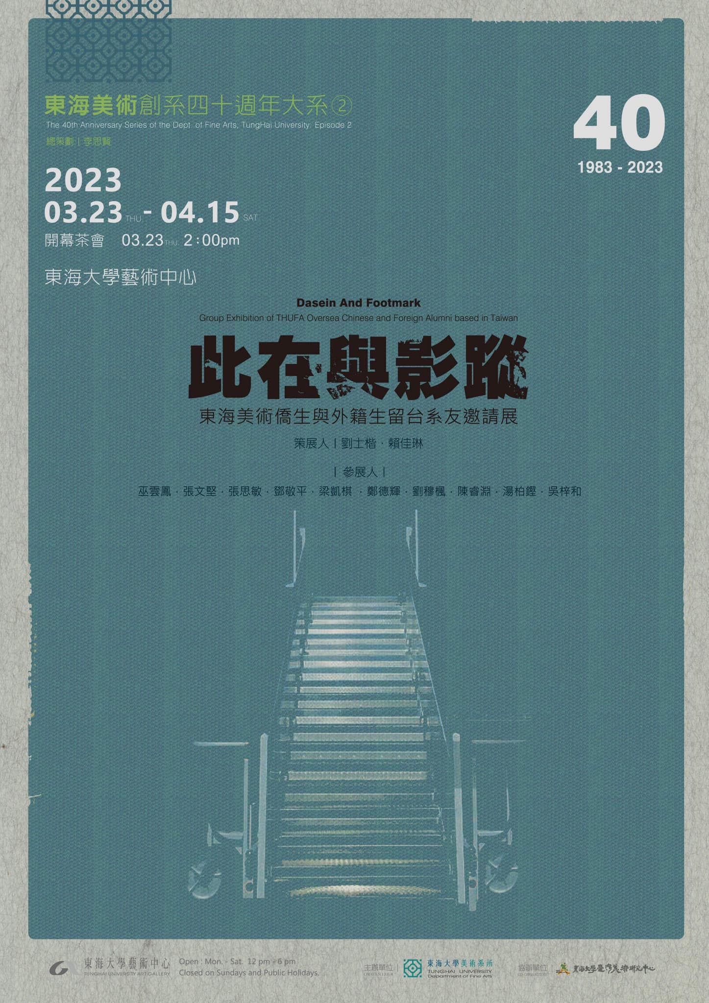 新展預告-東海美術創系40週年大系2] 此在與影蹤-東海美術僑生與外籍生邀請展 策展人:劉士楷、賴佳琳 展出藝術家:巫雲鳳、張文堅、張思敏、鄧敬平、梁凱棋、鄭德輝、劉穆楓、陳睿淵、湯柏鏗、吳梓和 展覽時間:2023年3月23日至4月15日 開幕茶會:2023年3月23日14:00 展覽地點:東海大學藝術中心