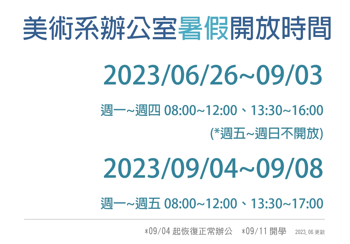 東海美術系-系辦暑假上班時間公告