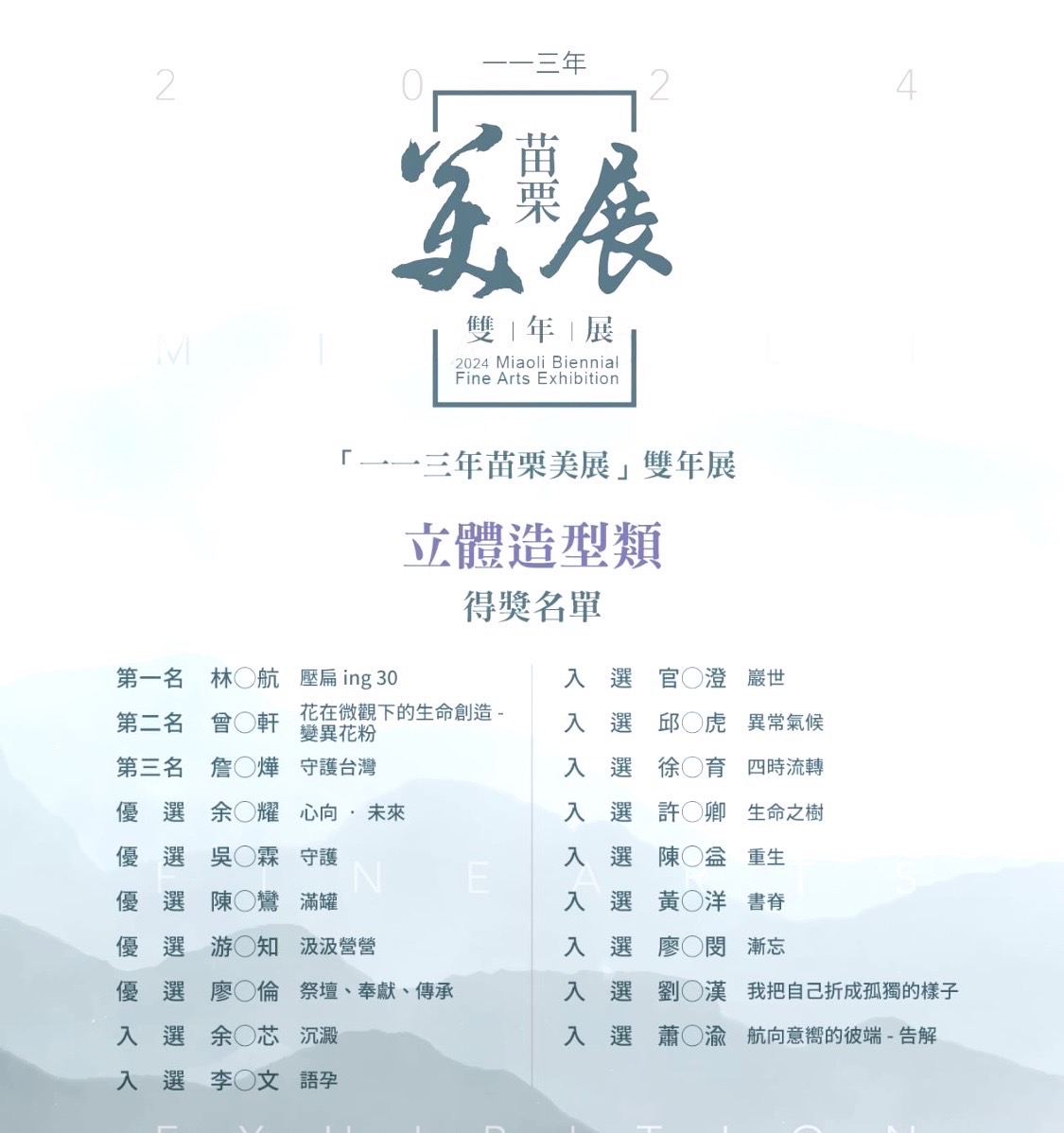 「一一三年苗栗美展」雙年展得獎名單出爐!