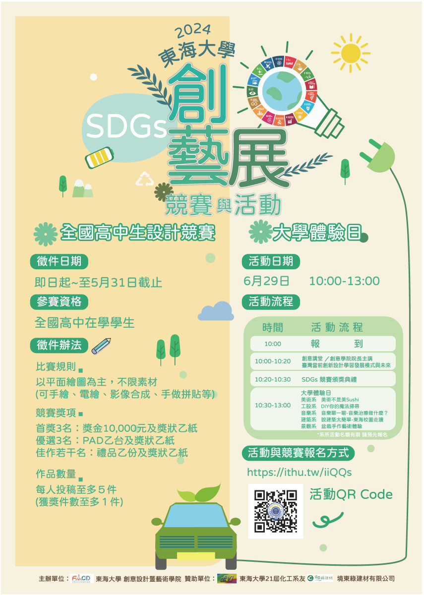 準備好一起來體驗創意的狂歡嗎?東海大學創藝學院誠摯邀請您參加我們的大學日體驗活動!這可是一次絕佳的機會,讓你親身體驗各個超有趣的科系活動,了解我們的創意世界!